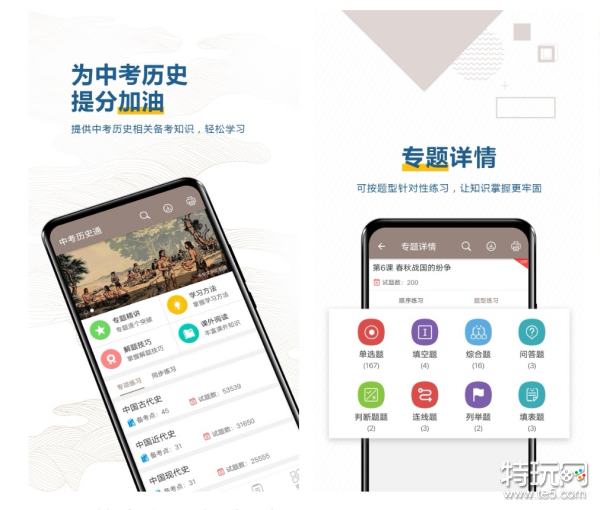 历史能够指引人们认清社会现实和经验,上每一个小伙伴都能确定自己的生活态度和目标,今天的这篇文章特玩网小编为大家介绍学好初中历史的软件有什么,只有大家更好的了解和掌握历史的发展才能去更好的迎接充满挑战的未来,特玩网小编为大家找到的这些软件,都能够满足大家学习初中历史的需求,丰富的课程和题目能够帮助大家扎实基础。