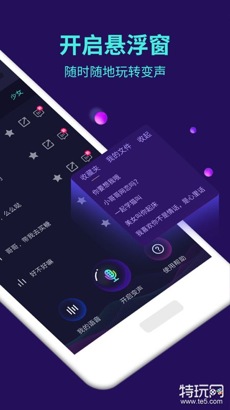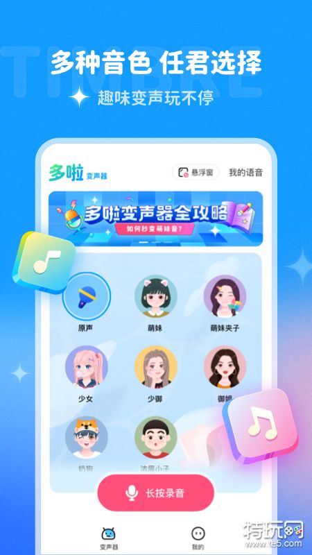 这个软件能够帮助用户在各种社交聊天以及在线直播当中实现有效变声,并且能模拟多种不同的生活场景,能够让聊天界面变得更加的丰富和有趣,悬浮按钮轻松实现变身,还有多种不同语音包可以在线选择。